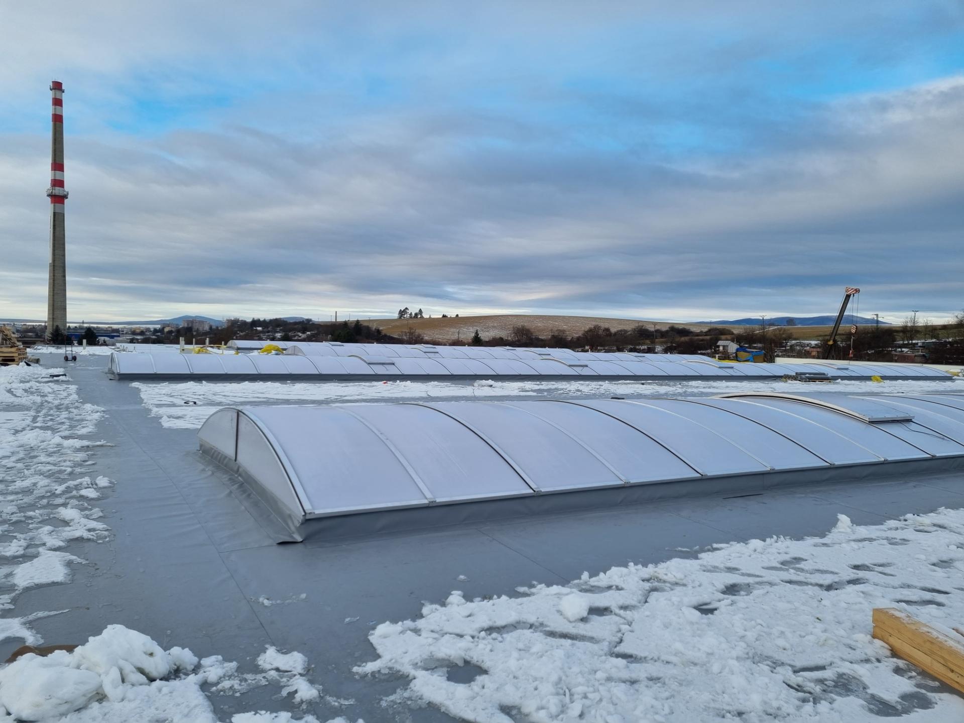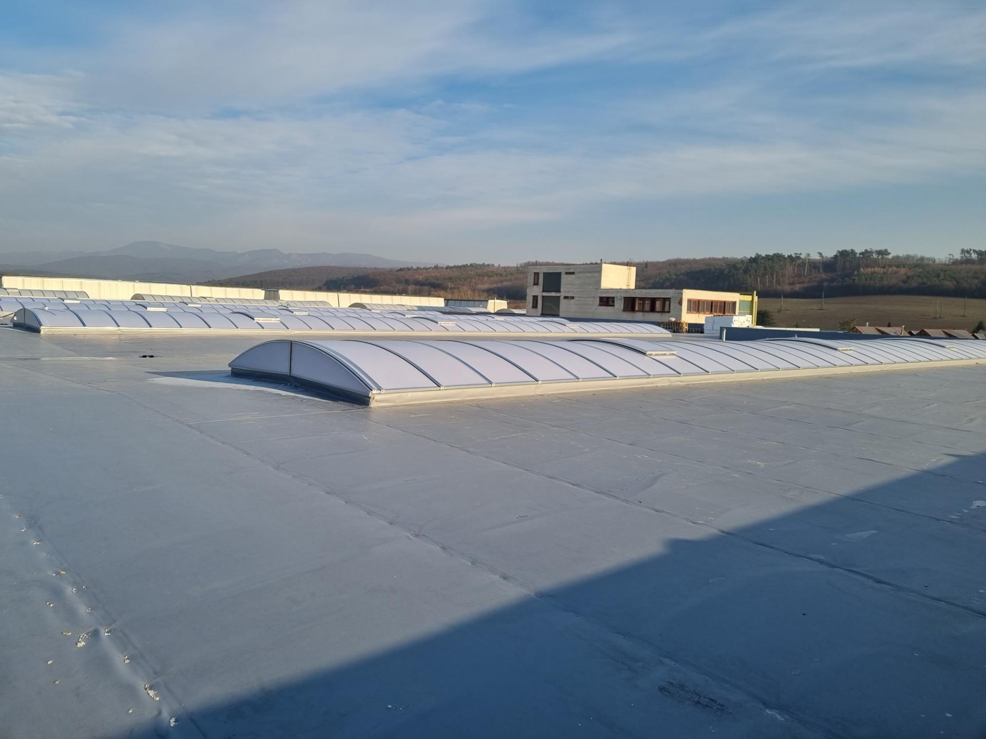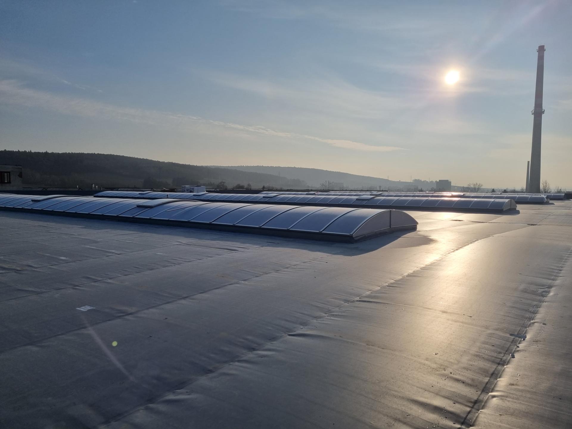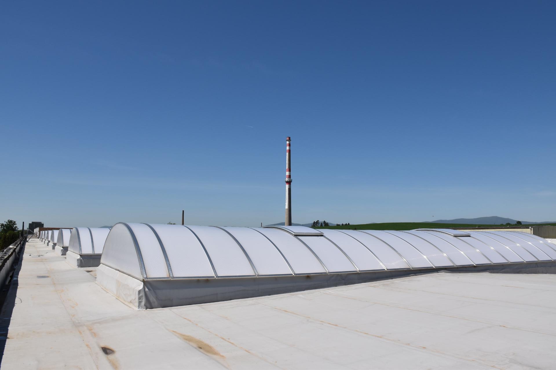 - Instalace světlíků: prostory pod plochou střechou lze přirozeně osvětlit pomocí střešních světlíků, což přináší přirozené světlo a snižuje nároky na umělé osvětlení. Střešní světlíky mohou být instalovány tak, aby zajišťovaly i ventilaci prostoru, což je obzvláště výhodné pro průmyslové a administrativní budovy, kde je často nutné efektivní odvětrávání.