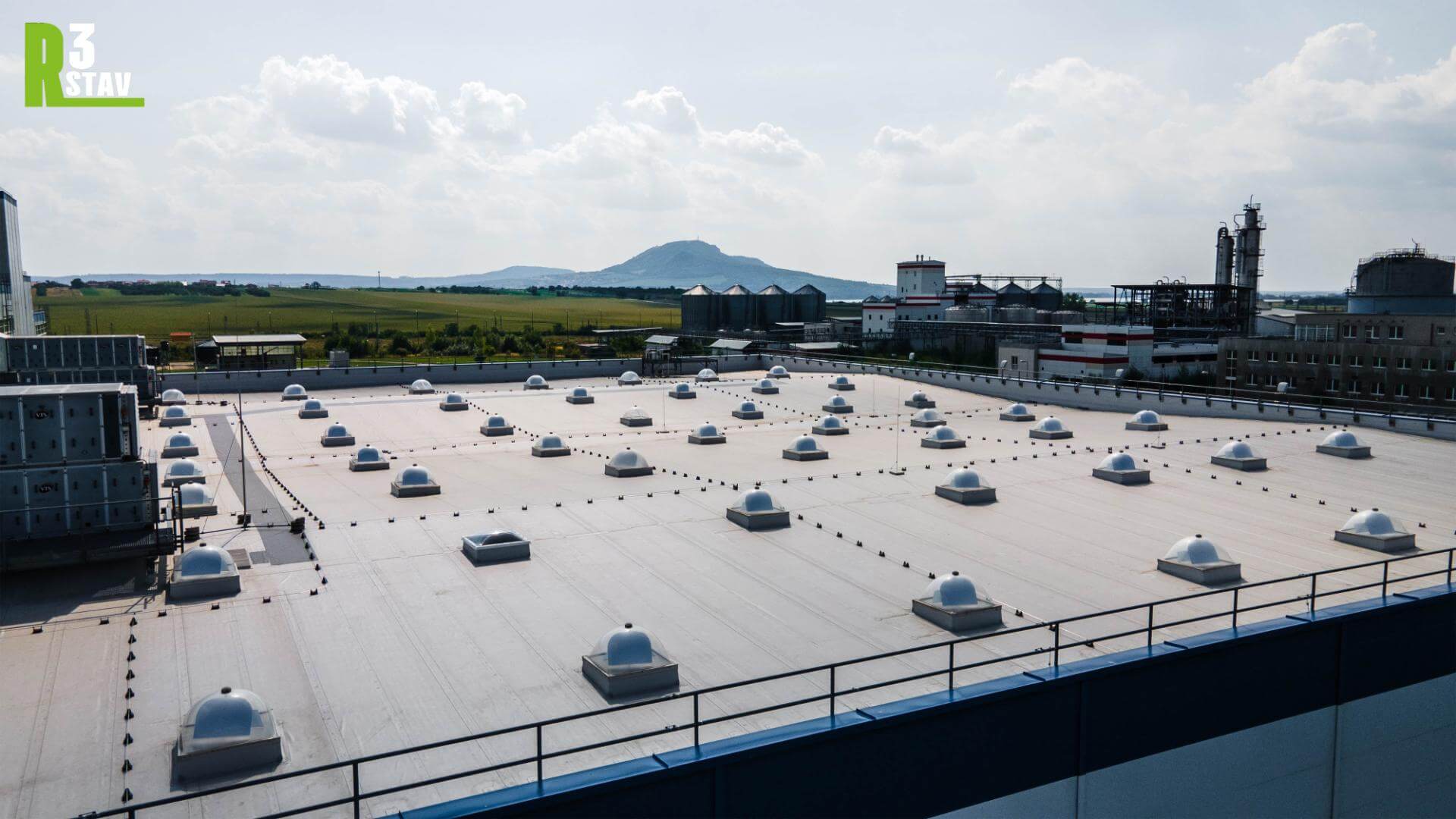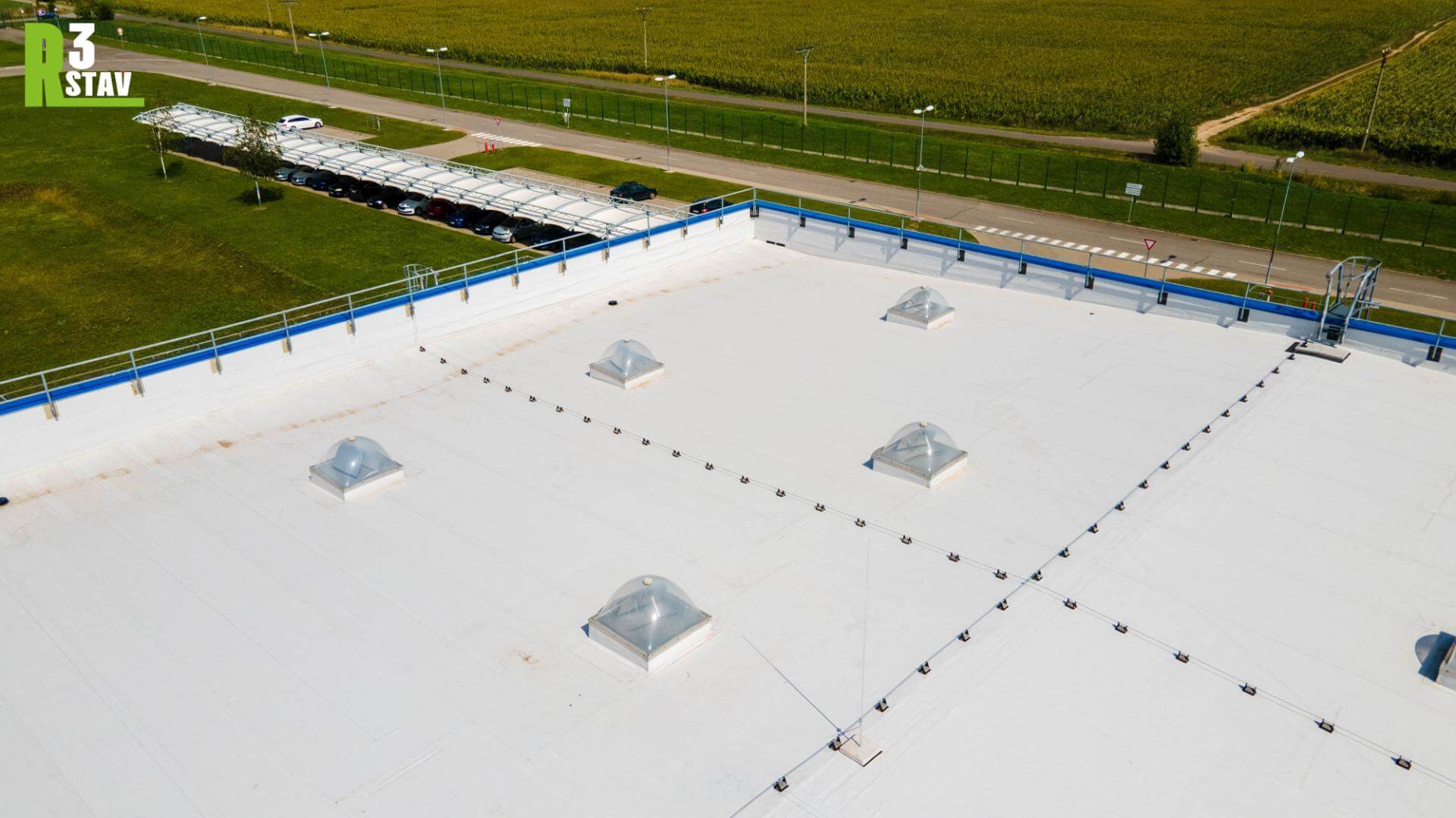 Prvým krokom bola kompletná demontáž strešného plášťa až po nosnú konštrukciu z trapézových plechov. To zahŕňalo odstránenie existujúcej hydroizolačnej vrstvy, tepelnej izolácie a parotesnej vrstvy z PE fólie. Po tejto demontáži nasledovala montáž novej strešnej skladby. Najprv bola inštalovaná samolepiaca parozábrana z AL fólií s hrúbkou 0,25 mm, potom bolo vykonané zateplenie strešného plášťa minerálnou vatou s celkovou hrúbkou 180 mm a následne bola namontovaná nová hydroizolačná vrstva z PVC fólie s hrúbkou 2,0 mm. Táto novo navrhnutá skladba plne spĺňa požiarne požiadavky podľa štandardu Broof (t3).